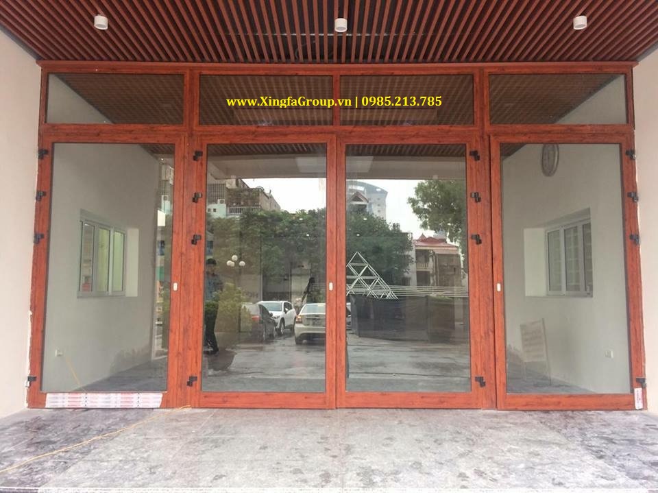 Mẫu số 7: Mẫu cửa đi nhôm hệ Xingfa Zhongkai nhập khẩu mầu vân gỗ (giả gỗ)
