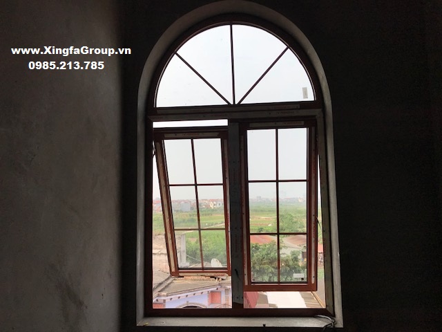 Mẫu cửa sổ uốn mái vòm cong nhôm Xingfa mở quay 2 cánh