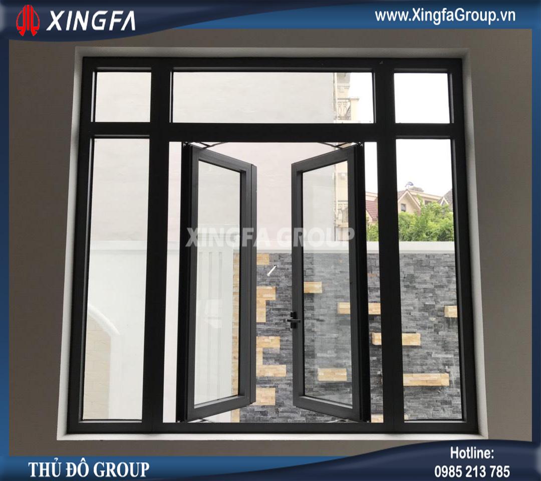 Vách kính cố định nhôm Xingfa + cửa mở quay 2 cánh trên cùng một khuôn cửa