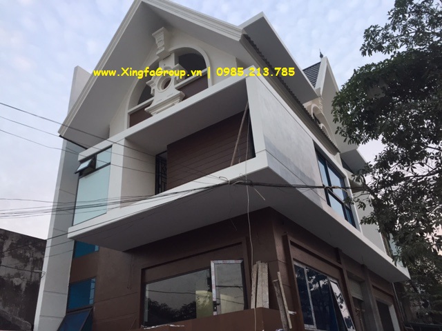 Mặt tiền công trình biệt thự nhôm Xingfa nhập khẩu dùng kính xanh phản quang tại nhà anh Giang ở Thị xã Sơn Tây
