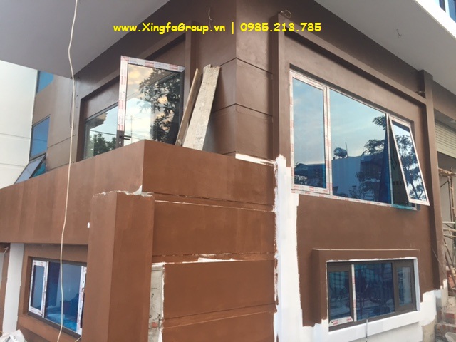 Anh Giang đang xây dựng công trình nhà ở của mình tại Thị xã Sơn Tây theo phong cách thiết kế biệt thự kết hợp kinh doanh mặt tiền nhà phố. Sau khi tham khảo bên phía kiến trúc sư thiết kế toàn bộ công trình cho nhà mình, đến hạng mục phần cửa, Anh Giang đã quyết định lựa chọn toàn bộ hệ thống cửa của nhà mình từ bên trong các phòng ngủ, cửa nhà tắm, cửa sổ đằng sau, cửa đi thông phòng, cửa mặt tiền nhà chính.. đều dùng bằng dòng sản phẩm cua nhom Xingfa chính hãng tem đỏ Quảng Đông mầu nâu sần.